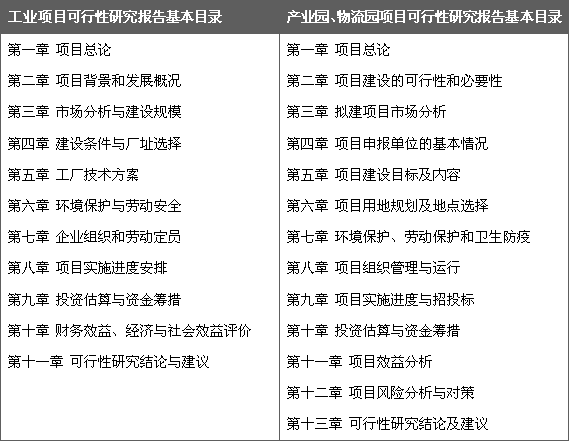 可行性研究報告按用途劃分為以下六類: