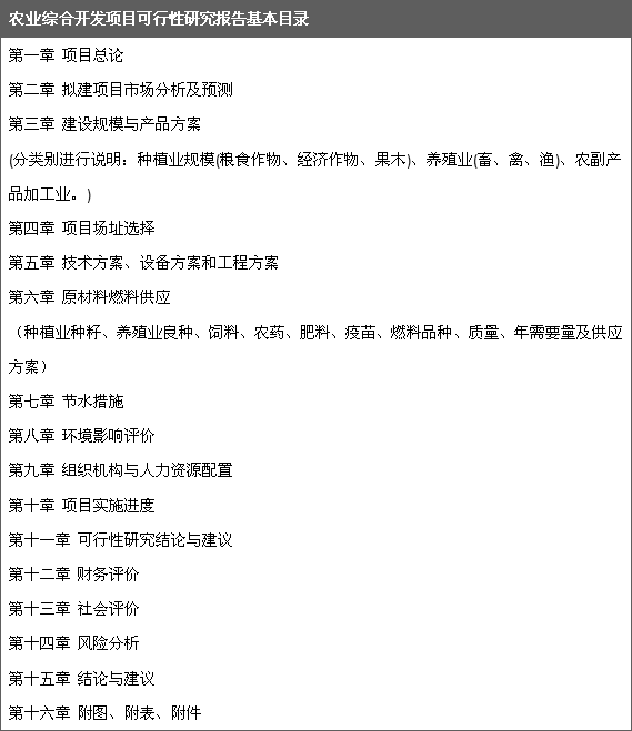 項目可行性研究基本目錄