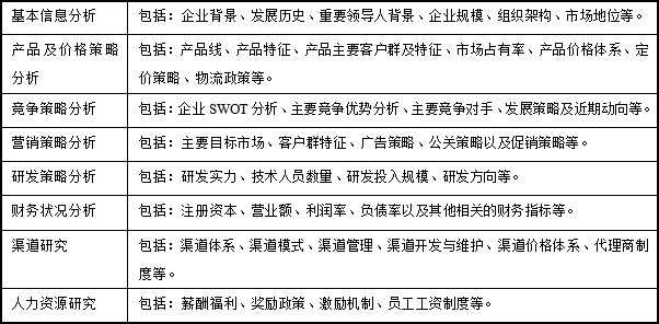 · 各競爭對手在戰(zhàn)略布局、營銷管理、渠道架構等方面各自手段及優(yōu)劣勢
